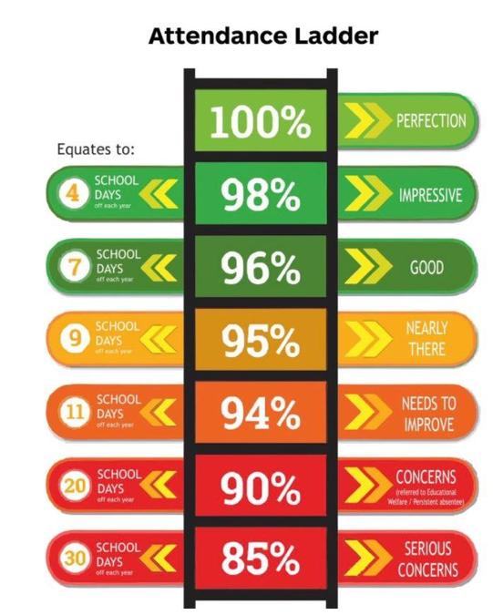 If your child dips below 95% school may contact you to discuss your child's absence and how we can support you.